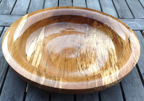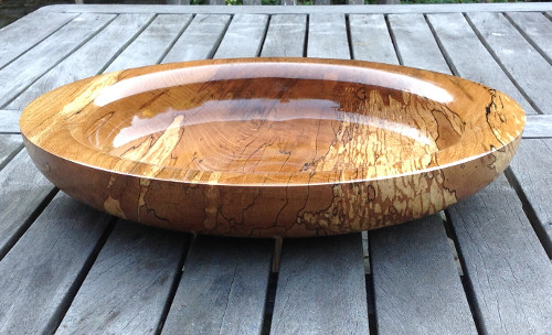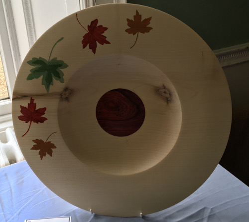 14" Platter/bowl of sycamore with Blackwood insert and decorated rim.
